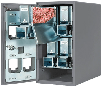 •Dispenses rolled coin on demand •Up to 8 rolled coin magazines – supporting quarters, dimes, nickels, and pennies •Audible alarm in vault door •System connectivity via data cables (provided with system) •Coin Magazine Capacities (for U.S. Coins) • Standard Capacity System 1¢ – 160 rolls, 5¢ – 130 rolls, 10¢ – 180 rolls, 25¢ – 100 rolls • High Capacity System 1¢ – 320 rolls, 5¢ – 260 rolls, 10¢ – 360 rolls, 25¢ – 200 rolls